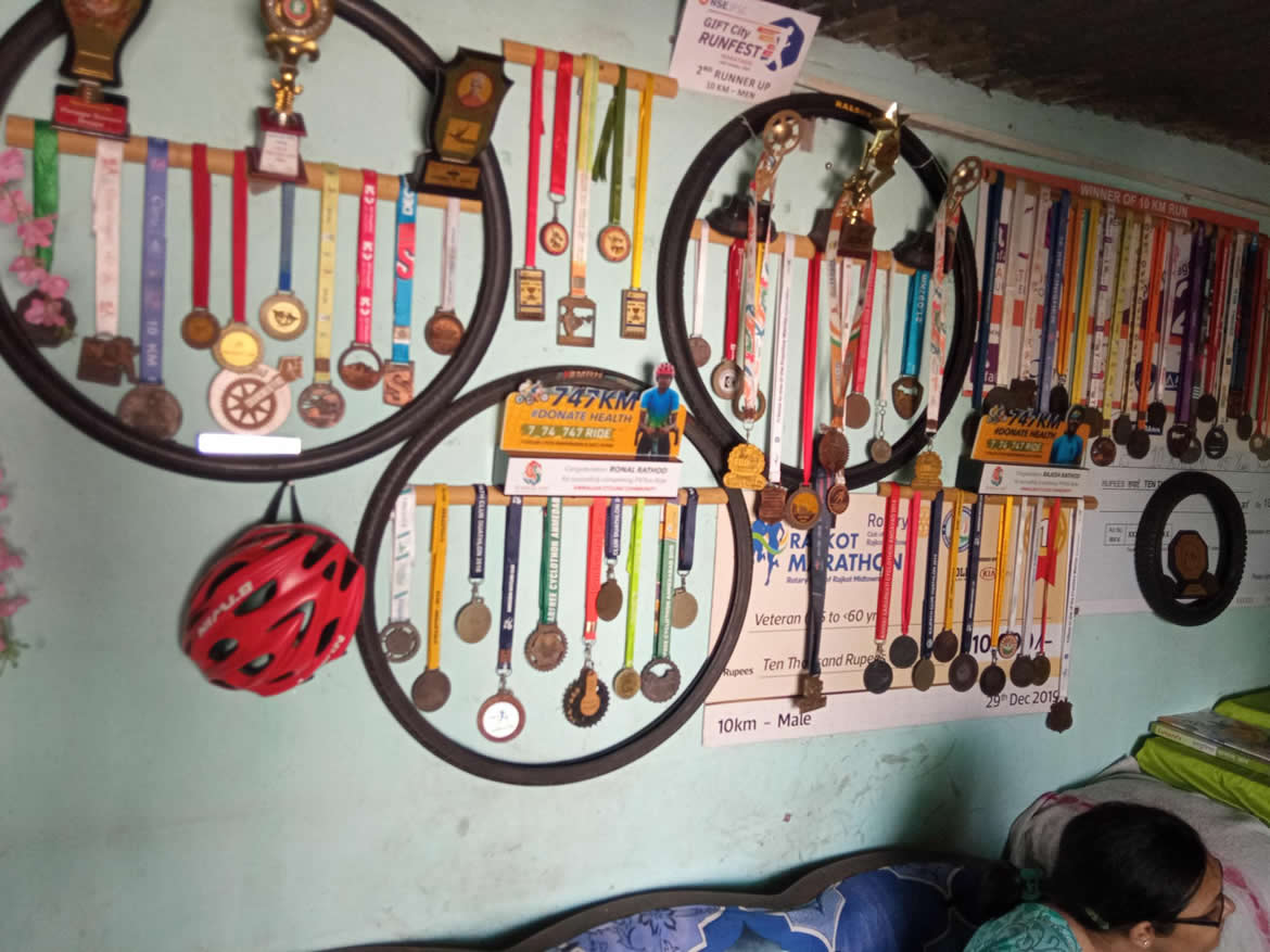 Ronal again participated in another Inter College competition in 2019 and secured third position but failed to make it in the All India University competition as his cleats got damaged thereby leading to more distance between him and the group while chasing. With no equipment, no facility for indoor training, he was acquainted by his friend to Infoanalytica Foundation which supported athletes like him. He got help in paying the down payment up to Rs 15,000 to purchase a high quality road bike. It is because of them that he now owns a bike that he can participate in competitions with. He pays the monthly instalments for the bike.