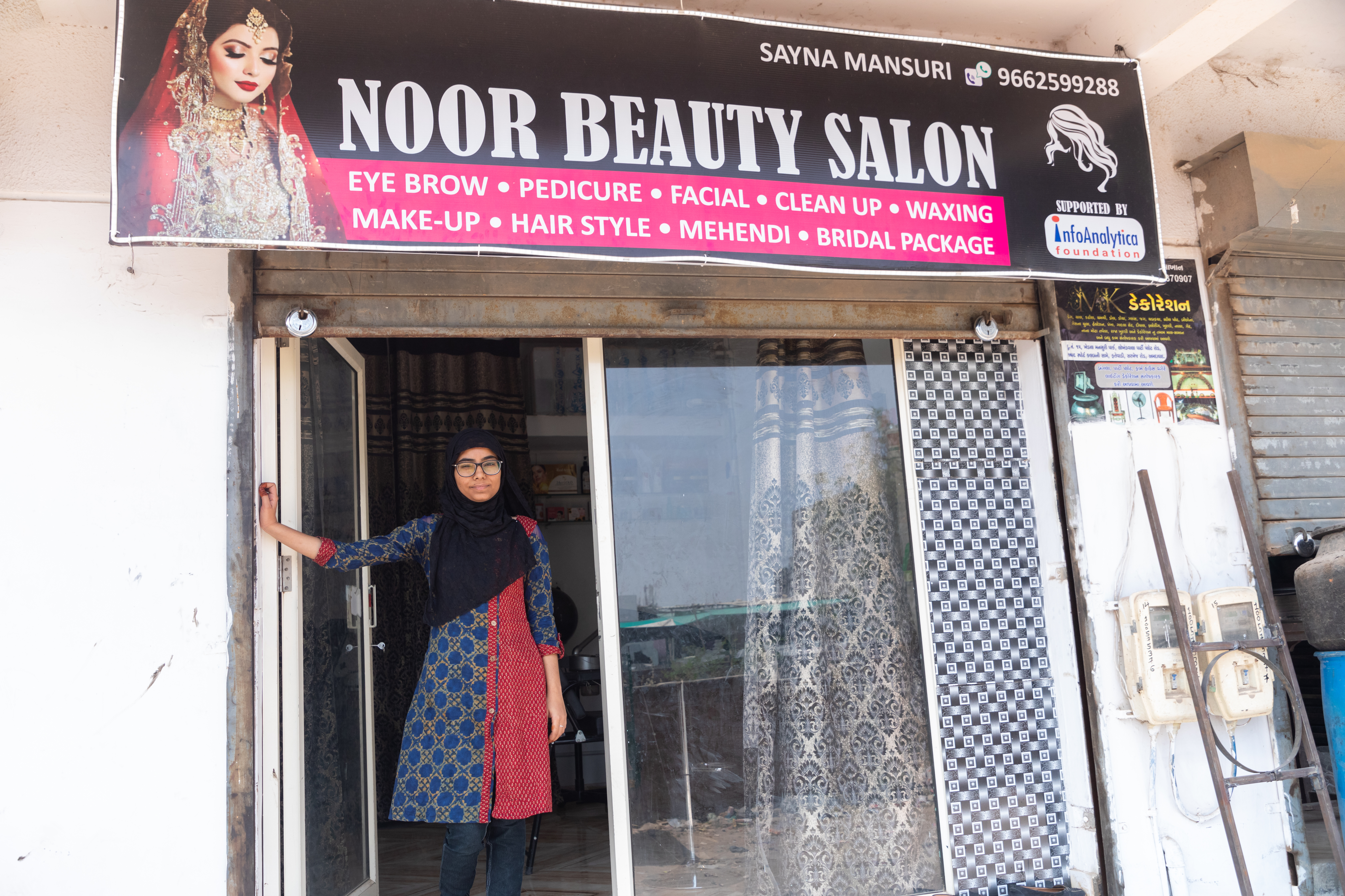 As we take her leave, Sayna recalls her father's advice of always being self reliant. She aims to start many more branches and train many girls like her. Her immediate goal is to ensure her rise in earning so that her mother doesn't have to work as a tailor anymore. Studying in third year of her undergraduate degree, she says, "I set up Noor Beauty Salon in March 2022. The wedding season will take off soon. So, I am expecting better footfalls."