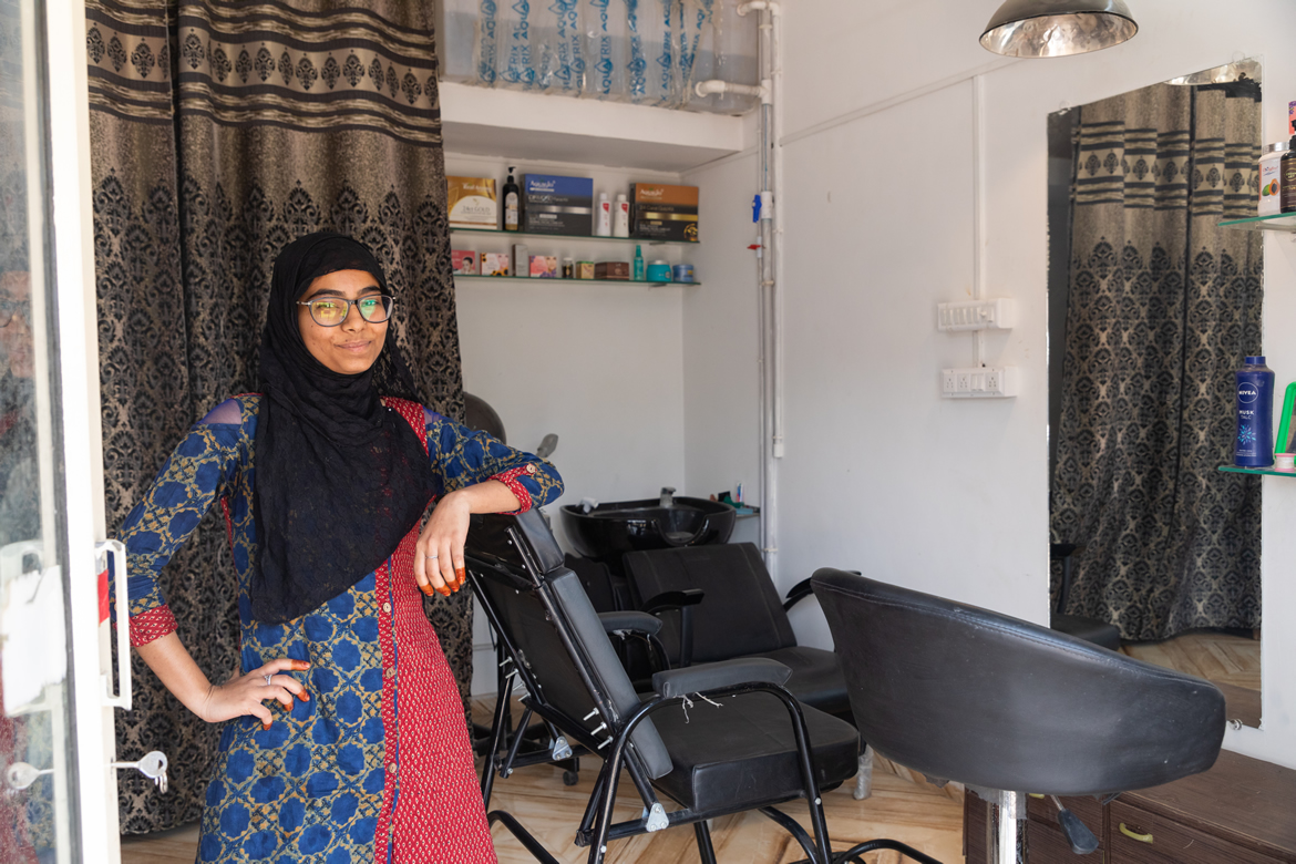 As we take her leave, Sayna recalls her father's advice of always being self reliant. She aims to start many more branches and train many girls like her. Her immediate goal is to ensure her rise in earning so that her mother doesn't have to work as a tailor anymore. Studying in third year of her undergraduate degree, she says, "I set up Noor Beauty Salon in March 2022. The wedding season will take off soon. So, I am expecting better footfalls."