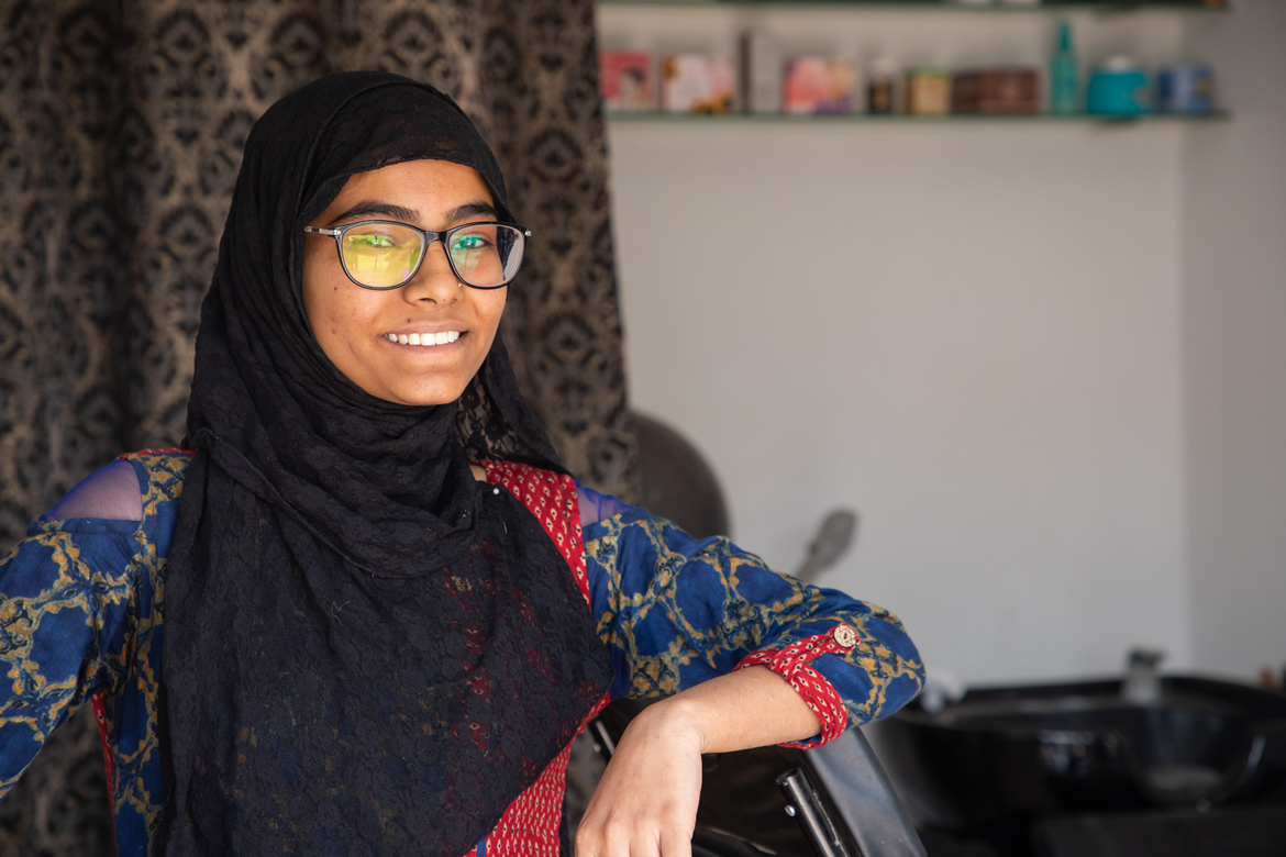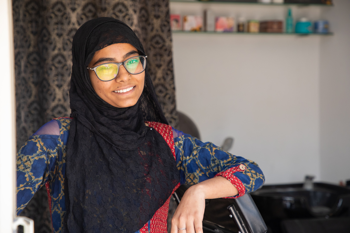 Life has not been the bed of roses for Sayna Mansuri. 20-year-old Sayna is a resident of Fatehwadi, a neighbourhood in North Ahmedabad comprising of small one room units. Since childhood, her family has seen struggles over their earnings. Both parents were burning the midnight oil to run the house and provide education to their three daughters. But this was not enough to support growing household expenses. Hence, Sayna along with her studies started to learn basic make-up skills and other related salon services through online videos to add an extra income.